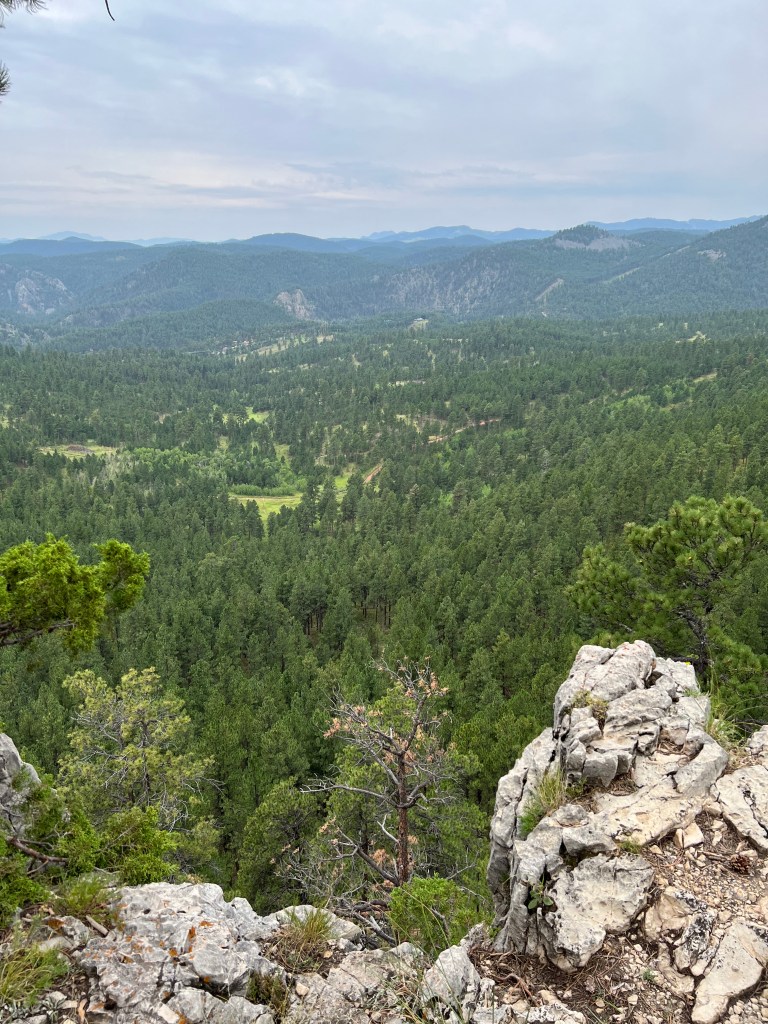 Be advised that your actual destination has no trash and no bathrooms. If you require the use of a restroom, there is a porta-john (open Memorial Day to Labor Day) at the Iron Mountain picnic ground, just before the overlook. Also noteworthy: the Black Hills through-hiking equivalent to the Appalachian Trail or the Pacific Crest Trail, the Centennial Trail, cuts right by this area.